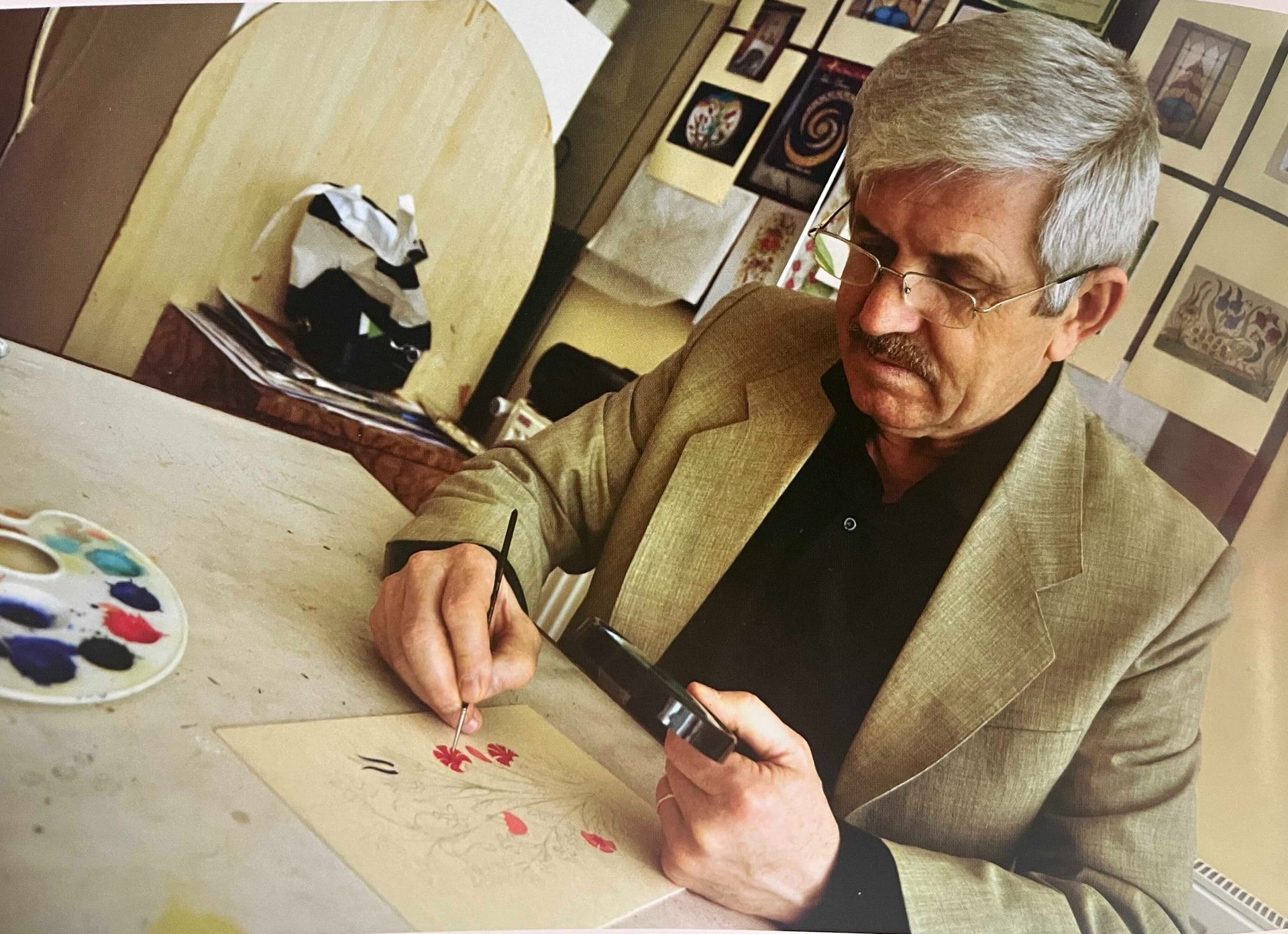 30 yılı aşkın süredir sevgi, sabır ve emeğini yansıttığı çalışmalarını bugün Gani Sokak'taki mütevazı atölyesinde sürdürüyor
