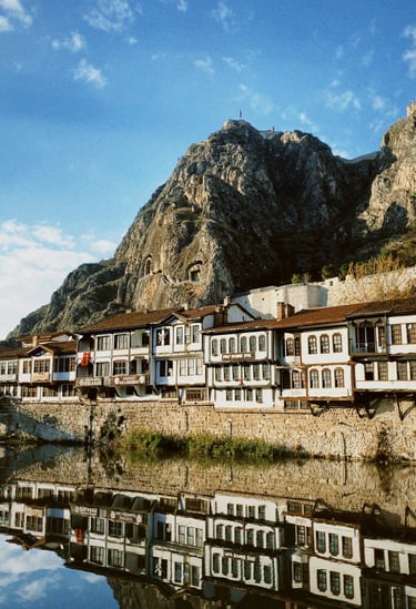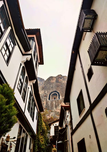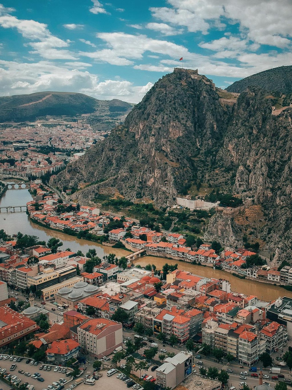 • Yeşilırmak Vadisi'nde Ferhat Dağı ve Amasya Kalesi eteklerinde kurulmuş açık hava müzesi gibi olan bu kenti, kuşbakışı Çakallar mevkisinden izlemeden,
