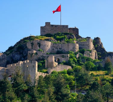 Harşena Kalesi: Yeşilırmak'ın kuzeyinde bulunan ve Harşena Dağı adı verilen dik kayalıklar üzerinde yer alır. Kalenin, Belkis, Saray, Maydonos ve Meydan adlarında dört kapısı, kale içinde Cilanbolu adlı bir su kuyusu, sarnıcı ve zindanları bulunur. Kaleden 70 metre aşağıda Yeşilırmak Nehri'ne ve kral mezarlarına kadar uzanan MÖ 3. yüzyıla ait merdivenli bir yeraltı yolu ile burç ve cami kalıntıları görülmeye değer niteliktedir. Kalenin güney eteğinde Osmanlılar tarafından kullanılmış olan Kızlar Sarayı'na ait kalıntılar ile yamaçlarda yerden 20-25 metre yükseklikte düz bir duvar halinde kalker kayalara oyulmuş olan MÖ 3. ile 2. yüzyıllara ait irili ufaklı 7 adet kaya mezarı bulunur. Timur'dan kaçan Osmanlı Şehzadesi I.Mehmet Çelebi'nin bu kaleye sığındığı anlatılır.