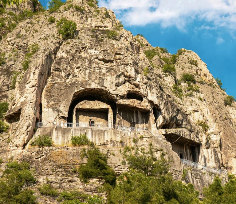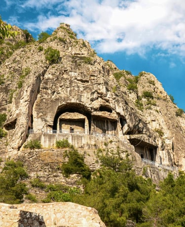 Kral Kaya Mezarları: Helenistik dönemde, Amasya'yı İÖ 301'den İÖ 183 yılına kadar başkent olarak kullanan Pontus krallarına ait olan Kral Kaya Mezarları, Harşena Dağı'nın güney eteklerine, kalker kayalara oyularak yapılmıştır.