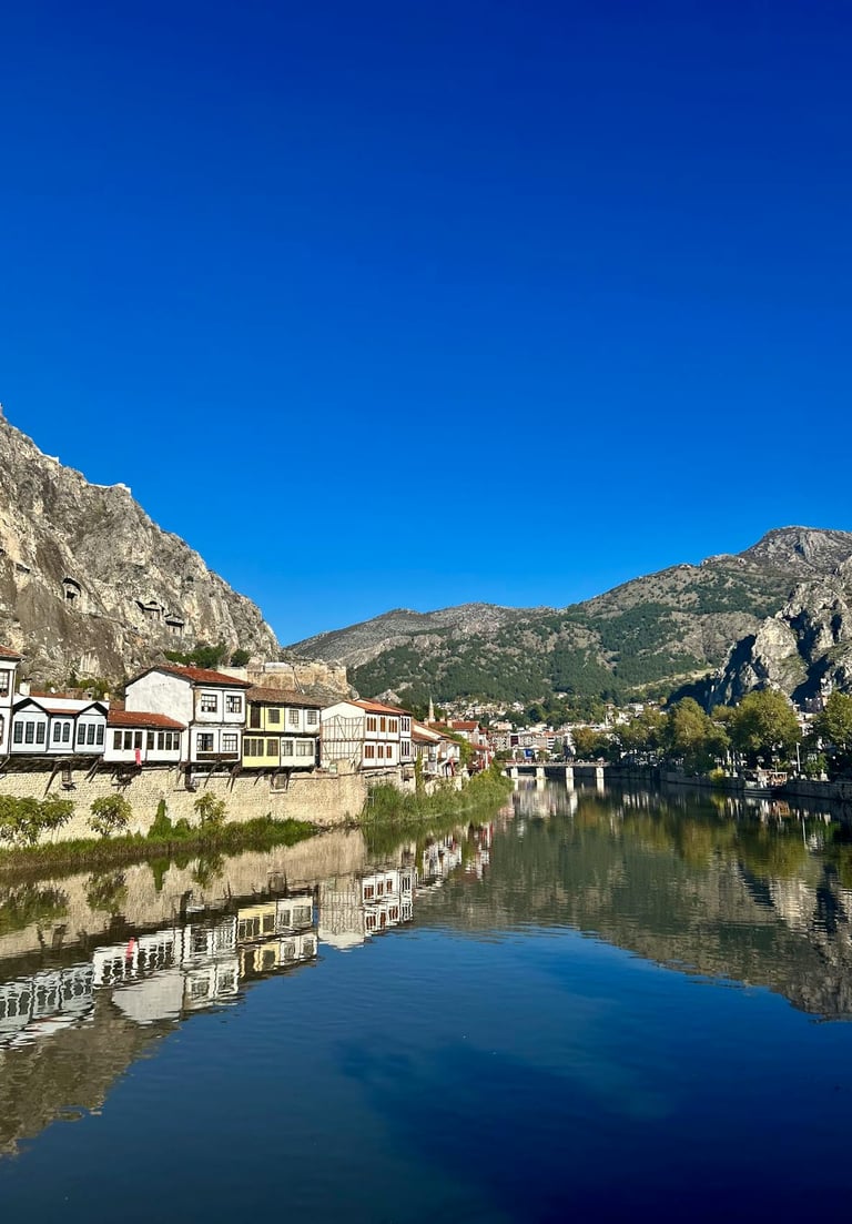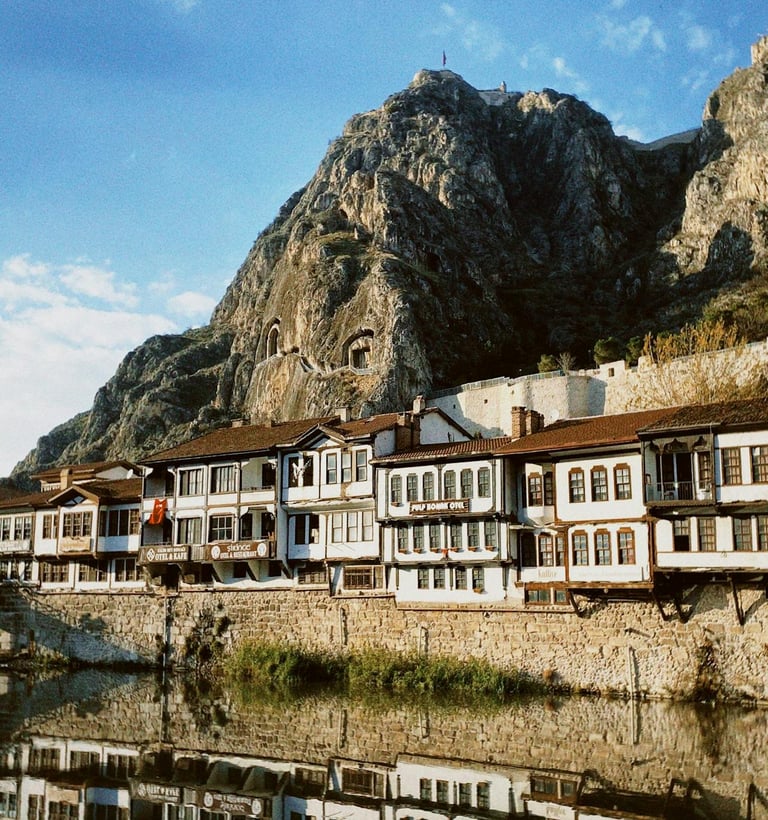• Çınar ağaçları altında semaver çayını yudumlarken, Yeşilırmak içerisinden yükselen Roma Dönemi sur duvarları üzerine dizilmiş Amasya tarihi Yalıboyu Evleri'ni, arkasında yükselen kalker kayalara ayrılmış Kral Kaya Mezarları'nı ve tepesindeki Amasya Kalesi'ni görmeden