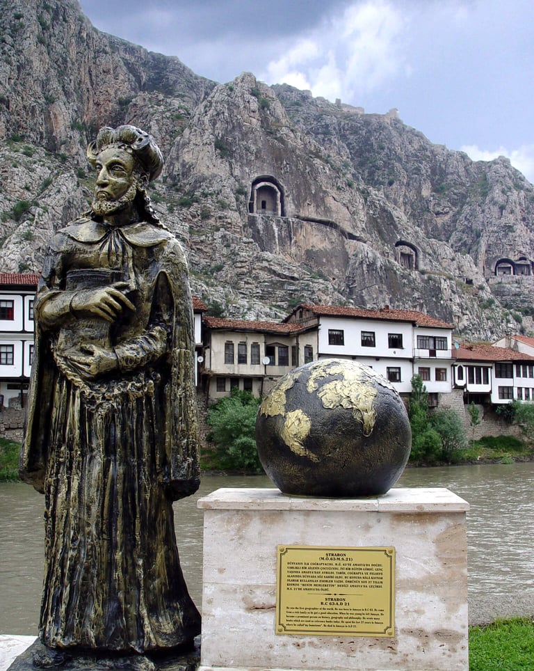 İsimleri ve eserleriyle tarihe mal olan bu ünlülerin başında coğrafyacı ve tarihçi Strabon gelir. MÖ 63'te Amasya'da doğan ve Roma aristokratlarıyla kan bağı olduğu düşünülen Strabon, varlıklı bir ailenin çocuğu olduğu için iyi öğrenim görmüştür. Amasya'dan ayrılıp Nil boyunca gezen, batıda Sardunya, kuzeyde Karadeniz, güneyde Etiyopya'nın sınırlarına kadar seyahat ettiği söylenen ve Roma'da uzun yıllar geçiren ünlü coğrafyacı, bu seyahatleri sırasında tarih, coğrafya, felsefe konularında çalışmış, bilgi toplamış ve eserlerini yazmıştır. Ardından Amasya'ya dönen ve hayatının geri kalan 26-27 yıllık kısmını burada geçiren Strabon MS 26 yılında burada vefat etmiştir. Tarihle ilgili 43 kitaptan oluşan eserinden geriye çok küçük bölümler kalmıştır. En ünlü eseri o dönemin bilgisine göre dünya coğrafyasını anlattığı Geographika'dır. Antik dünyanın ünlü coğrafyacıları arasında yer alan Strabon'un bu ünlü eseri birçok dile çevrilmiştir.