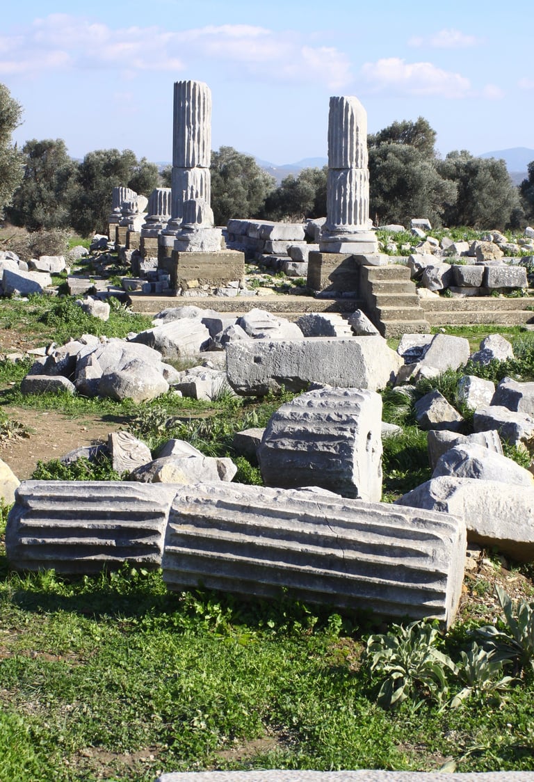 Teos’un en görkemli mücevheri, Hellenistik Dönem’in dahi mimarı Hermogenes’in imzasını taşıyan Dionysos Tapınağı’dır. Anadolu’daki en büyük Dionysos tapınağı olma özelliğini taşıyan bu yapı, antik mimarinin altın standartlarını belirlemiştir. Şarap ve tiyatro tanrısı Dionysos’a adanan bu tapınak, Teos’un neden sanatın merkezi olduğunun da en somut kanıtıdır. Tapınağın çevresinde yükselen sütunlar, binlerce yıl sonra bugün bile mandalina bahçeleriyle eşsiz bir kontrast oluşturur.